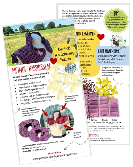 Seit fast 20 Jahren werden die beliebten Meindl-Rapskissen in liebevoller Sorgfalt per Hand im schönen Schleswig-Holstein gefertigt.